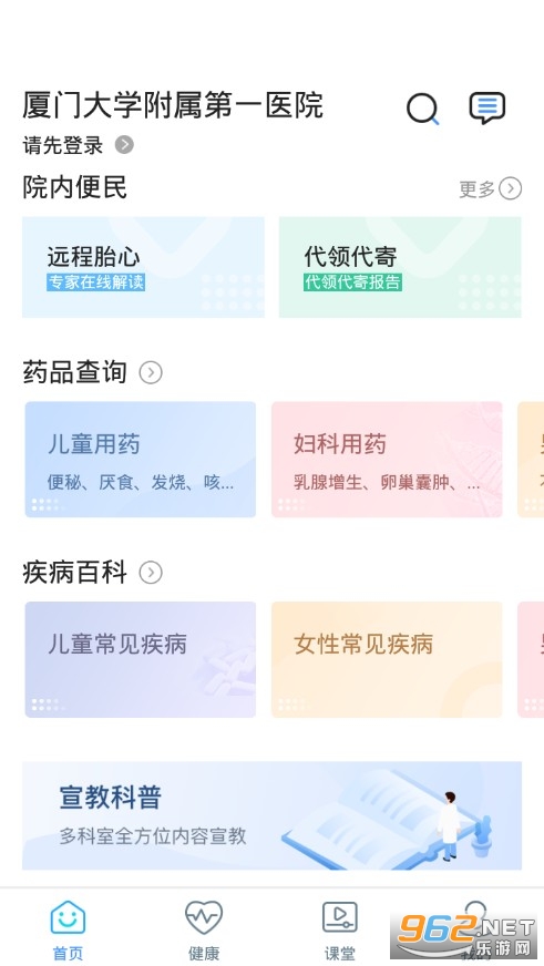《厦大一附院》是厦门大学附属第一医院的智能互联网手机医院,打造手机端医院让患者就医更加便捷,这个平台主要提供预约挂号、网络门诊、报告查询、排队叫号、用药咨询、体检预约等多种功能,一般医院就医问诊需要的步骤操作在这个平台上都可以轻松完成。