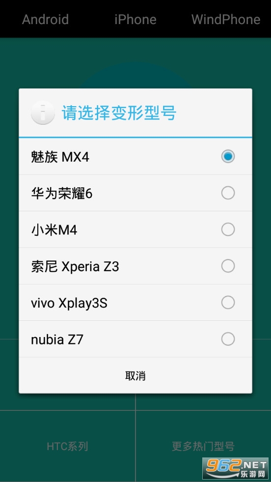一键修改自己手机的型号,操作简单,可以将手机型号变成苹果或者安卓,而且有着荣耀、华为、三星、魅族等各种不同类型可以选择,有需要的朋友可以下载试试。