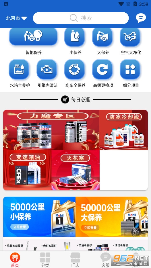 专业的汽车保养平台,针对汽车从上路到报废整个期间所有需要保养的项目都可以提供全面服务