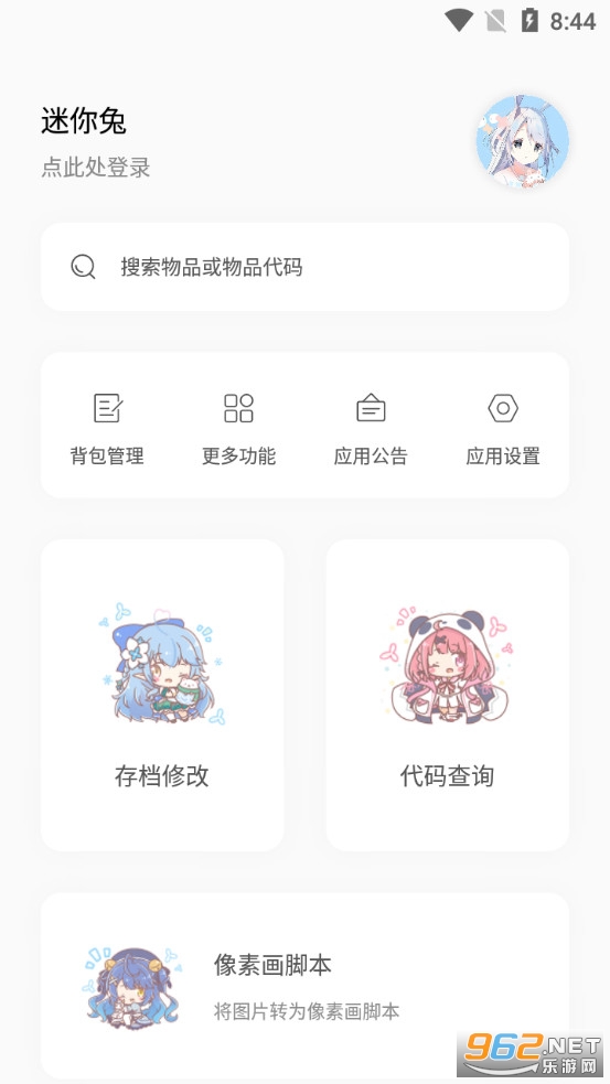 提供迷你兔下载安装最新版,《迷你兔app》是一款为迷你世界玩家打造的助手平台,朋友们可以利用软件来查看和管理自己的背包,可以用来修改自己的存档,也可以查看各个物品的代码,比如地心基石、岩浆、水等的代码可以一键复制使用,也可以上传图片利用软件来制作像素画。