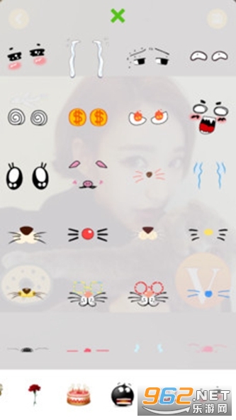 支持的素材相当的丰富,按照食物、头饰以及文字和数字、V等,