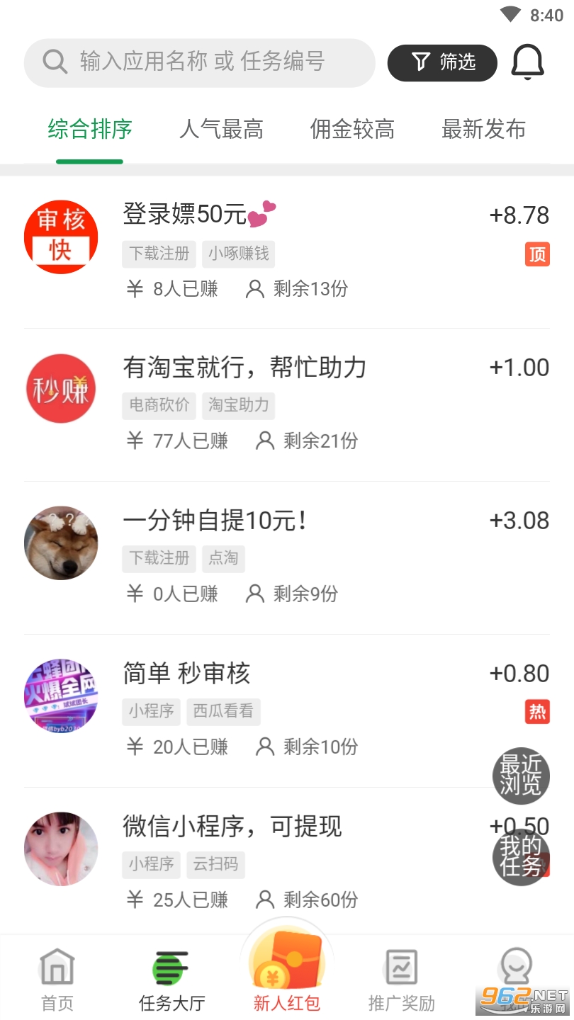 悬赏蛙-是珠海领酷网络科技有限公司推出的转发文章赚钱APP,让你充分利用自己的碎片时间,简单做悬赏任务,随时随地赚钱。悬赏蛙app下载安装后就有机会获得新人红包,平台上面有着海量的悬赏任务,大家还可以根据人气、佣金、最新等方式来选择适合自己的任务,完成就可以获得现金奖励。悬赏蛙赚钱靠谱吗?目前平台上线时间不长,任务多、赚客少,每天都有做不完的任务,感兴趣的朋友快来下载试试吧!