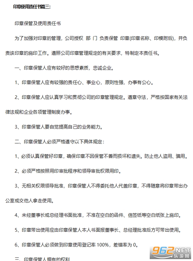 《印章使用责任书》中为大家带来3份比较详细的印章使用责任协议书,大家可以根据其中的模板来进行起草,或者直接下载文档修改。主要针对企业印章的使用和保管做出明确的责任细分,有需求的话就快来下载吧!