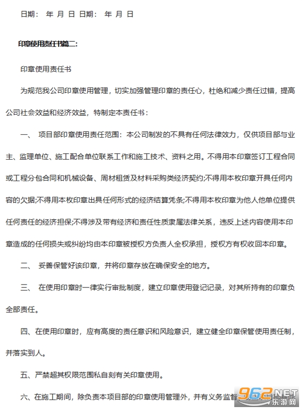 印章使用责任书篇二: