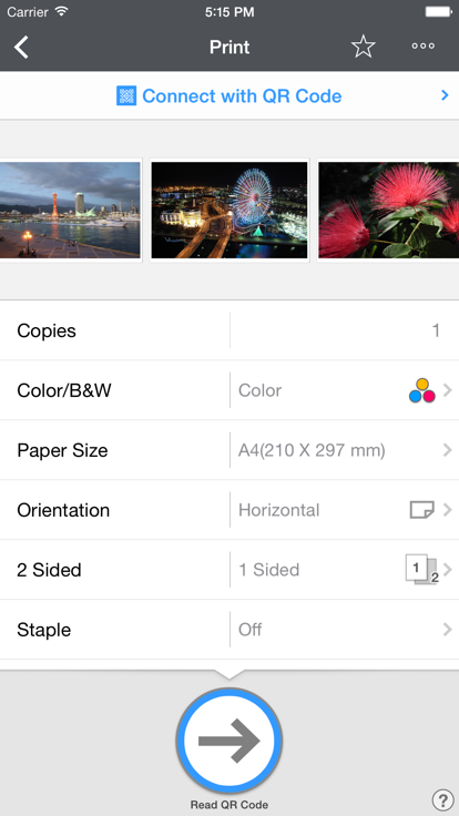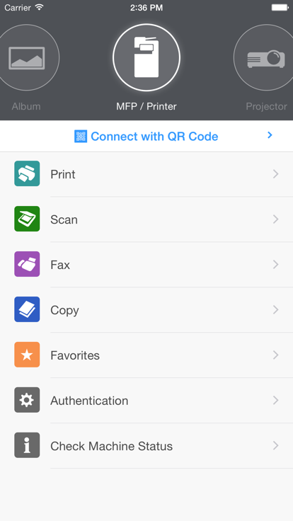 通过RICOH Smart Device Connector,您可以通过低功耗蓝牙、二维码或MFP的IP地址或主机名在智能设备上注册,从而快速访问 RICOH 多功能打印机 (MFP) 或投影仪。