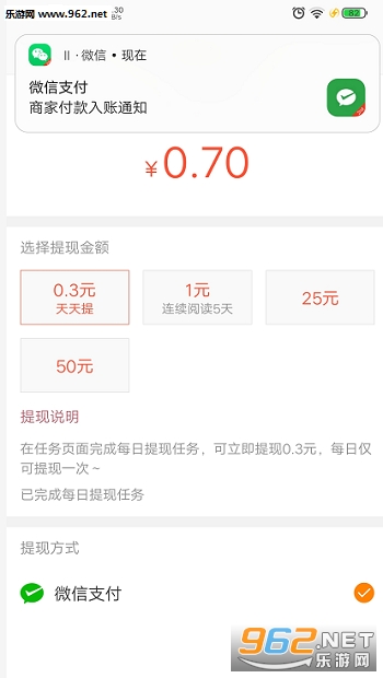4、每天看个广告视频后都可以获得0.3元提现机会,后面还有1元提现机会,不过有连续观看视频的要求,其它金额需要满25元才可以进行提现。