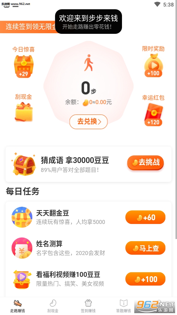 2026年3月上线的手机走路赚钱软件,在这里用户可以享受一边运动一边赚钱的体验,让你拥有健康的体魄,喜欢的老哥快来962试试吧!