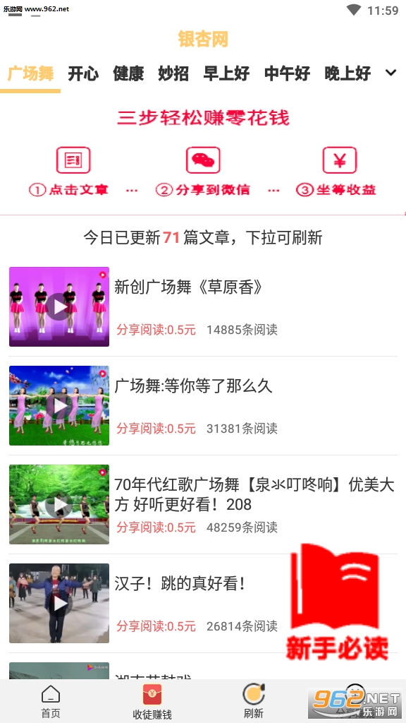 银杏网app平台稳的优势独当一面,呈现优秀精彩文章,只要分享转发文章有人阅读就能赚钱,自动计费,坐等来钱,收益更快,根本停不下来。往后的零花钱不用愁。