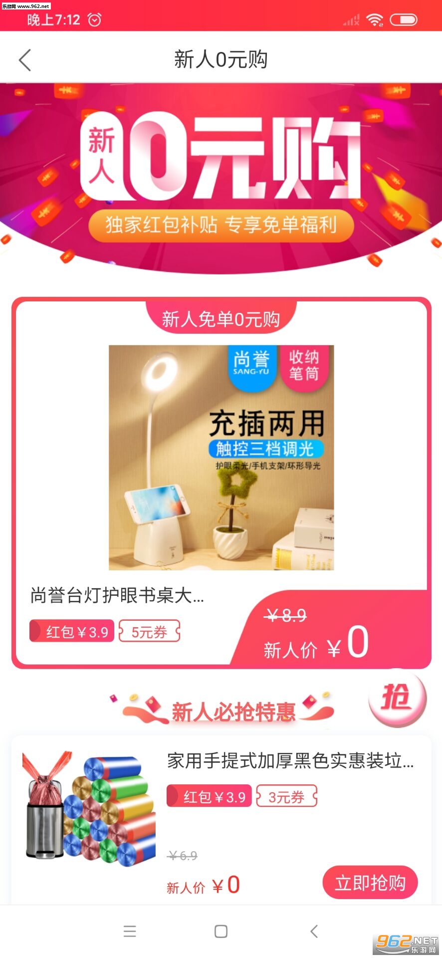 3.新人专享免单商品:塑料袋、洒水器、收纳袋、抱枕、强力粘等