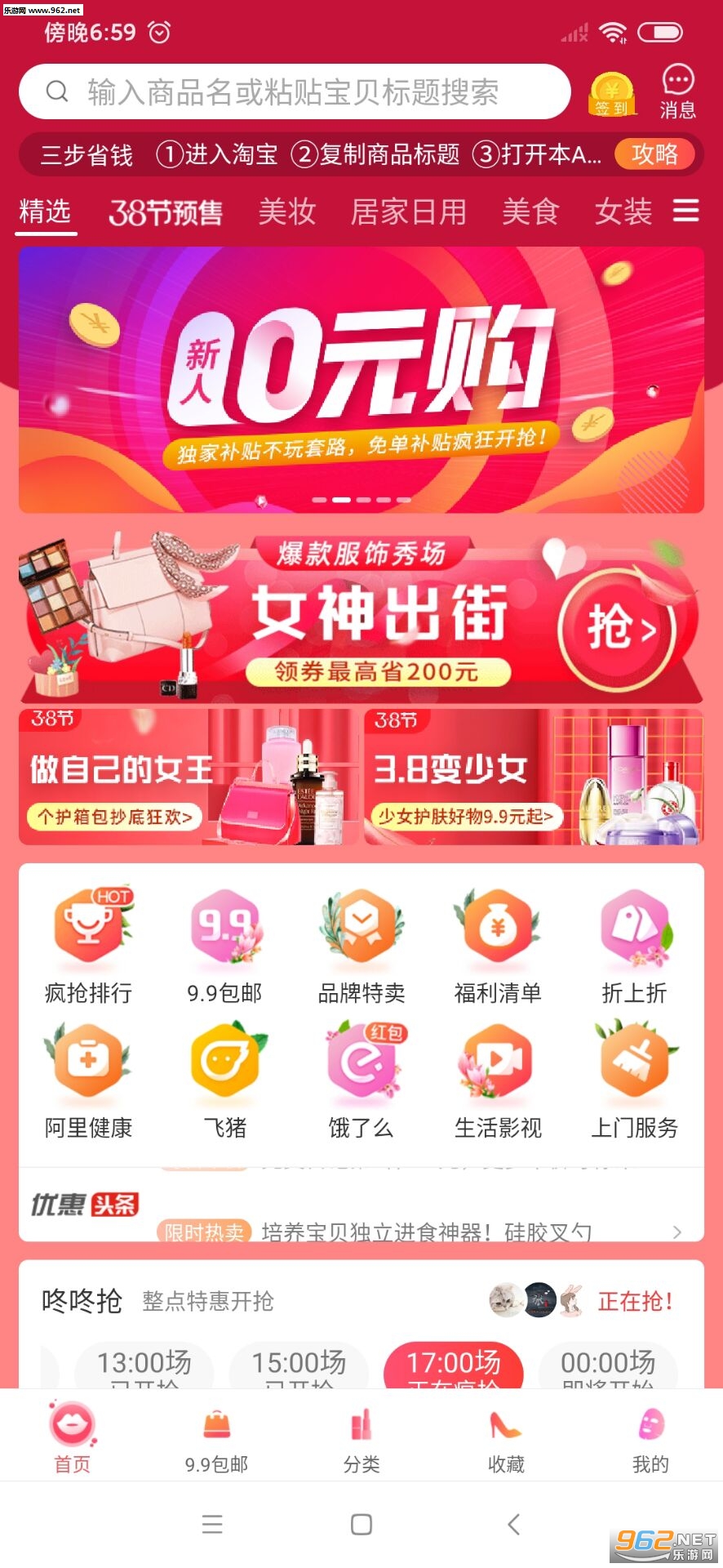 2.点击首页滚动窗口进入“新人0元购”活动页面