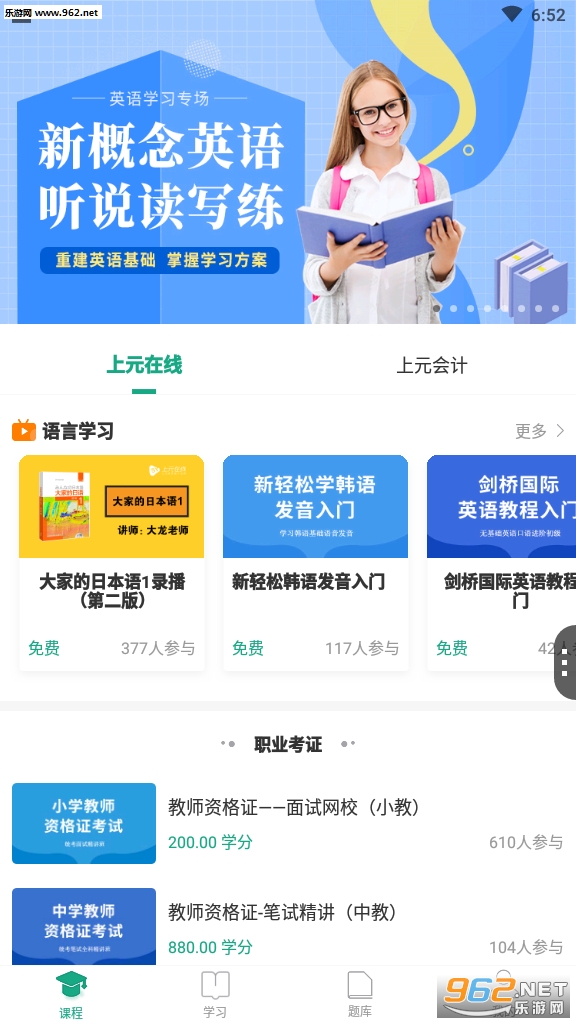 《上元在线网校登录》是一款非常给力的掌上学习教育平台,这里拥有当下最好的英语网课,就是在家也快也轻松的复习和学习知识,让你在较短的时间内将自己的成绩给提升上去。有需要的欢迎来962下载!