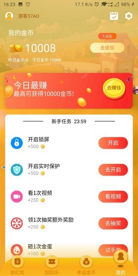4、我们以金币的形式,返还您的收入,当金币数值达到定额度以后,您就可以通过绑定的账号进行提现。