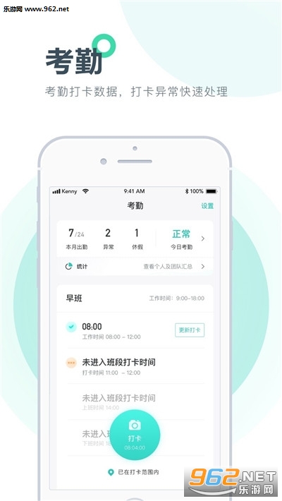 1、智能化考勤,为员工提供多种打卡方式,WIFI打卡,人脸识别打卡等,不用苦苦等待排队,排队打卡迟到不再有。配合打卡提醒,轻松出勤!