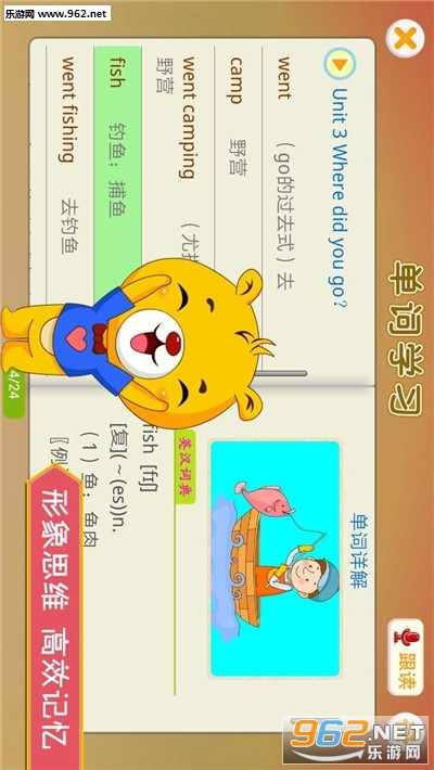 (3)单词均有形象的卡通配图、以及详细的词典解释,方便孩子快速掌握所学单词。