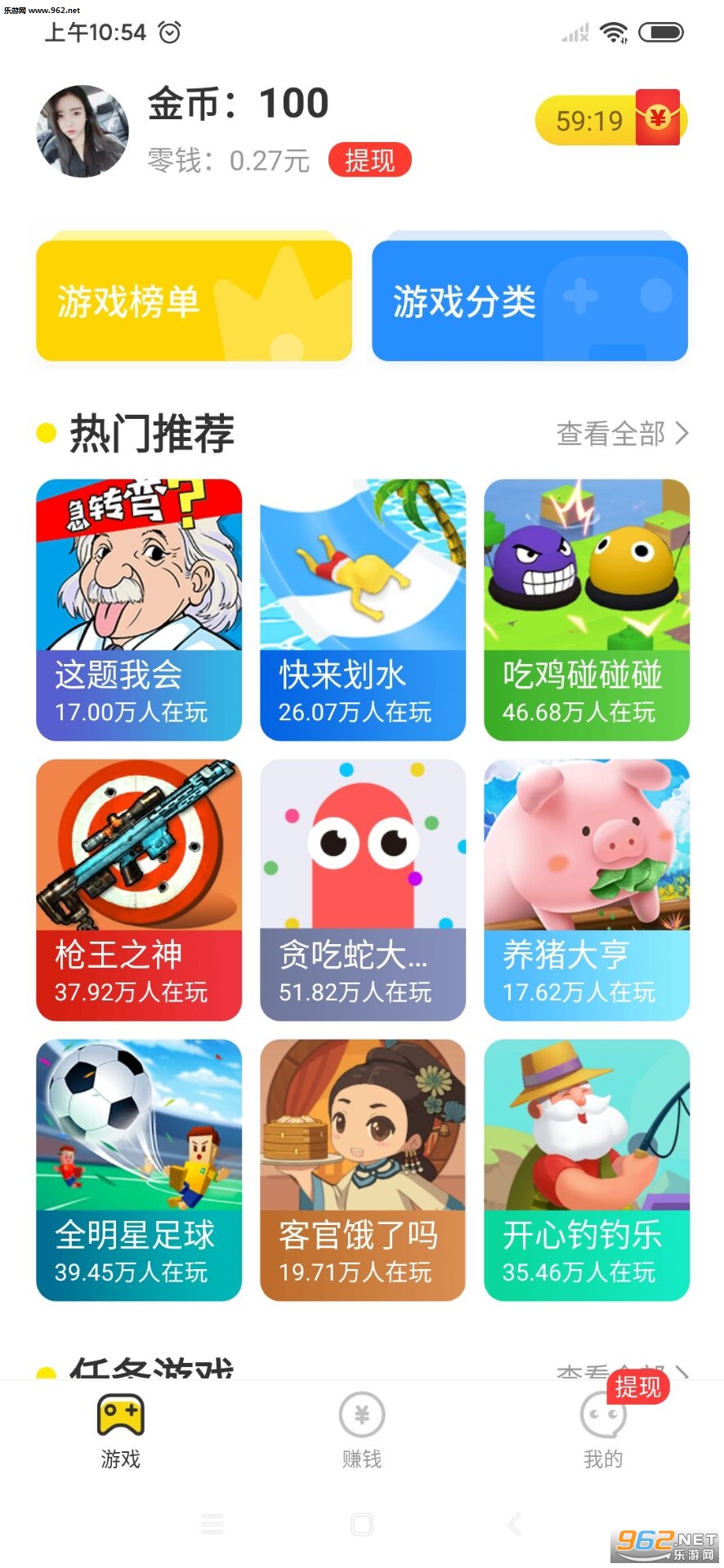 3.玩小游戏赚金币,金币可兑换现金