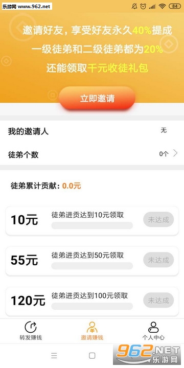 ②招徒奖励13元,2级下线转发收益分成奖励,徒弟20%,徒孙20%
