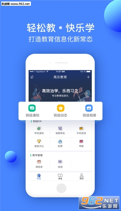 《高乐云教育登录平台》是一款智能教育学习软件,可以发布学校通知,班级圈功能能够让同一个班级的师生发布生活感悟,还可以对班级系统进行优化,课程直播学习等。