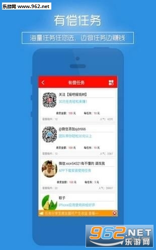 《赚钱项目软件》是一款全新上线的赚钱app,海量的兼职赚钱任务,轻松的赚钱体验,按照平台的要求完成规定的任务即可,海量的红包福利,提现轻松便捷,喜欢就来962下载吧!
