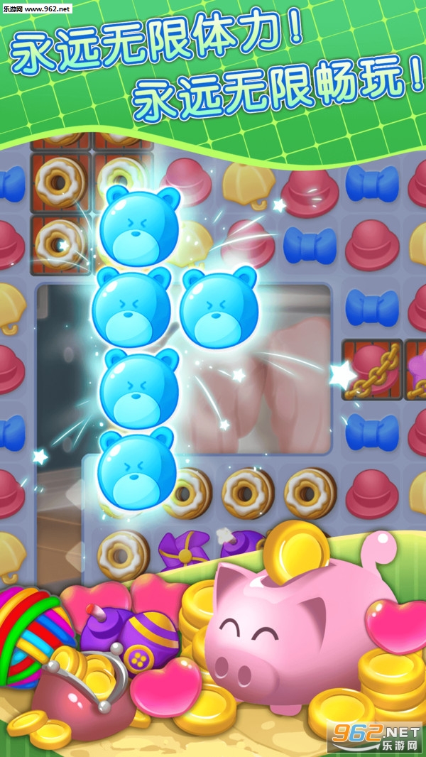 3、划动你的手指粉碎一系列的可爱图标,克服其中的障碍一定会上瘾的值得来体验。