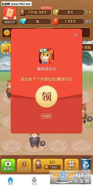 猫咪成长记红包版是拥有很高趣味性的休闲小游戏,玩家在这里可以通过养猫来赚钱,成为一名优秀的铲屎官就能获得丰厚红包奖励,伴随着游戏时长的增加,你的养成经验也会愈发深厚,完成所有任务后可以进入下一阶段,让你尽情体验全新游戏欢乐。