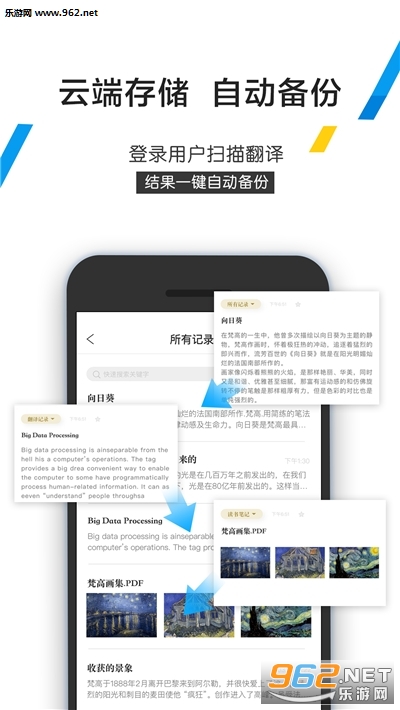 免费提供3G存储空间,扫描过的文字资料、图片、照片一键备份到云端。