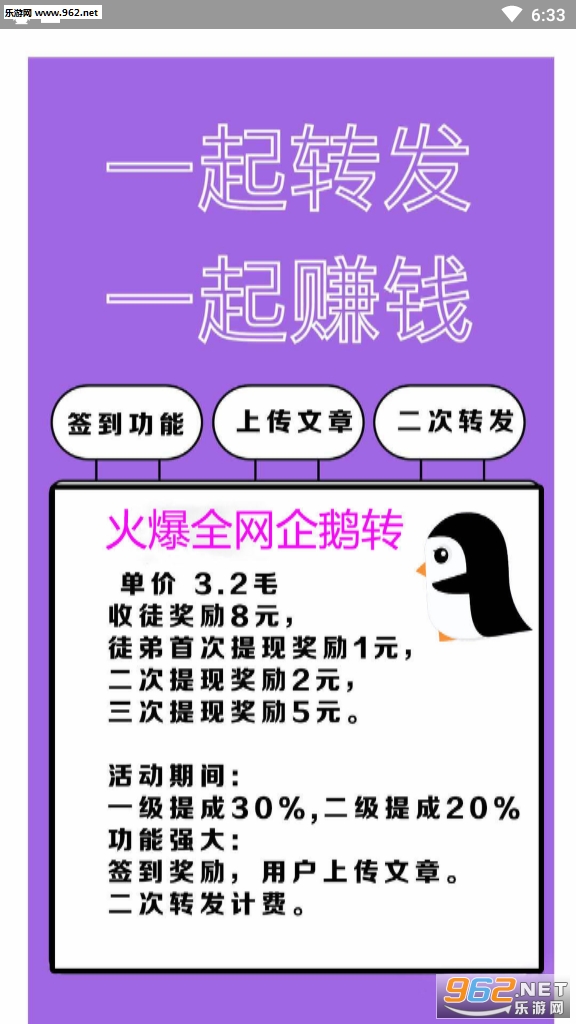 企鹅转app,就是这么任性,一款火爆转发赚钱平台,分享文章就能赚钱!最强力度放量转发,充分利用你的闲散时光,赶快下载转发赚钱吧!
