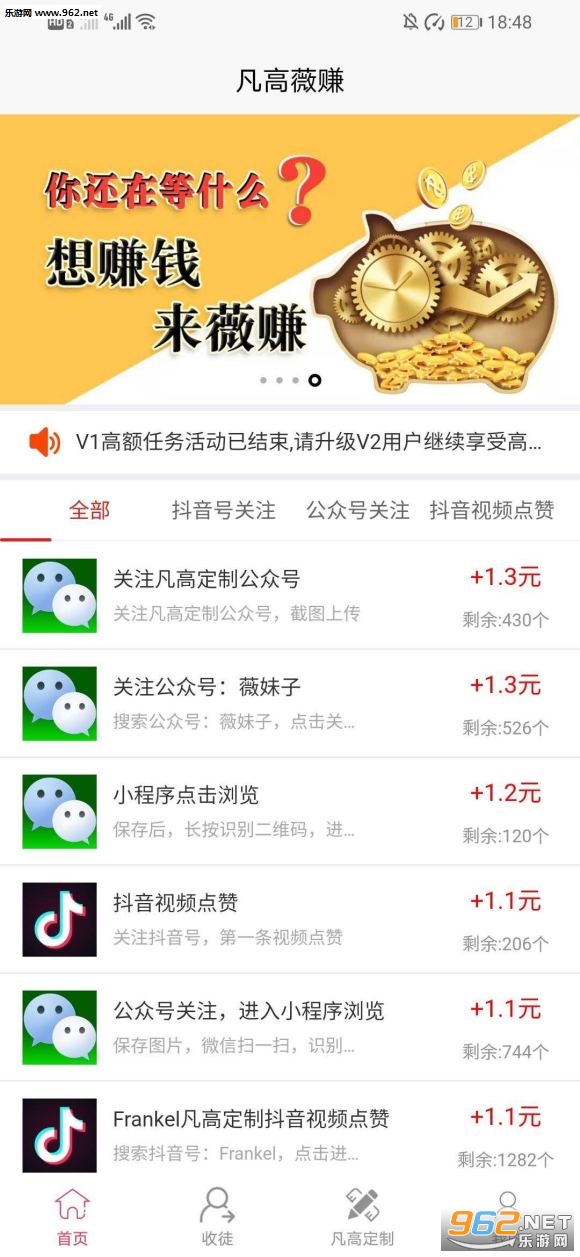 《凡高薇赚红包版》是一款手机赚钱的软件,该软件主要是通过领取任务的方式进行赚钱的,操作十分的简单便捷,在这里用户们每天可以领取不同类型的任务进行完成,任务完成的越多,赚取的零花钱将会越多,邀请好友加入也是可以赚取利润的哦,欢迎下载凡高薇赚app进行赚钱。