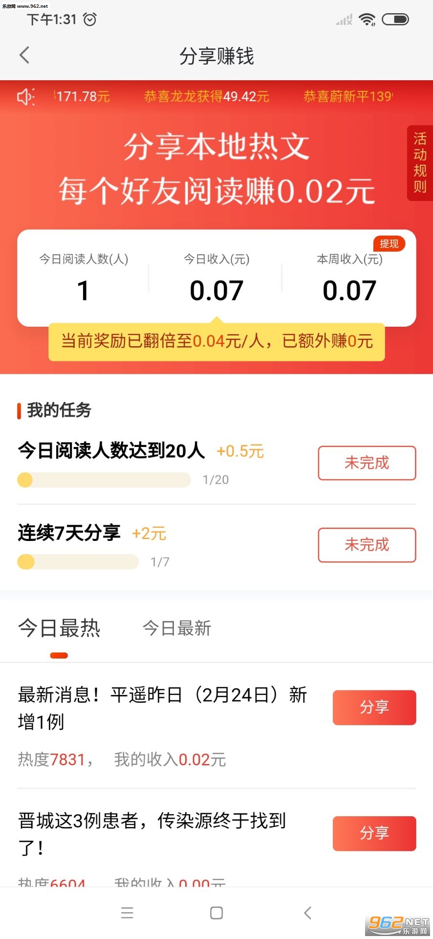 4.连续7天分享奖励2元