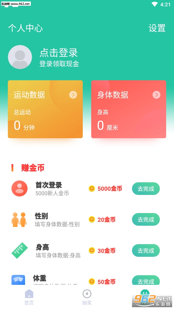 3、个人界面,信息明了,个人步数转化金币数