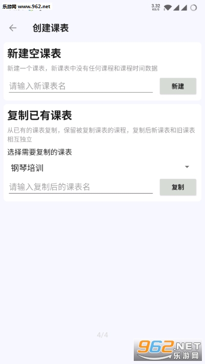 2.用户可以在首页中创建一个新课表,操作的模式是很方便;