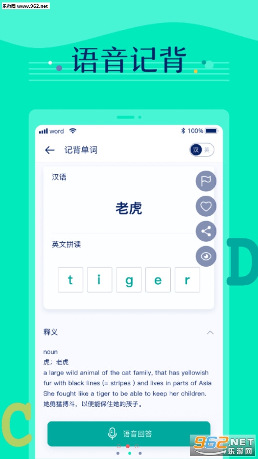 直接通过语音回复,响应单词内容,在背诵单词的同时还能锻炼单词的正确发音。