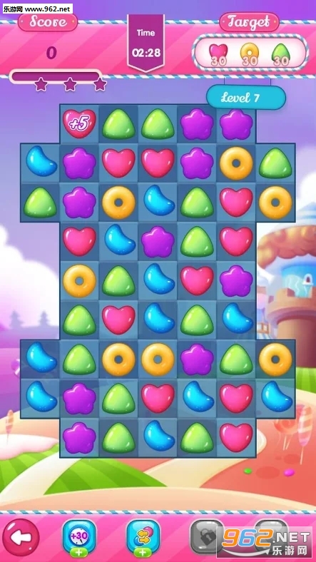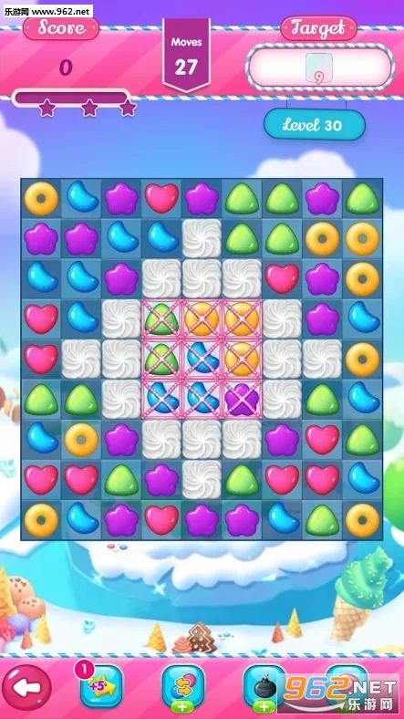 3、交换并匹配3个或以上相同的糖果来进行压碎爆炸,这样你会得到分数,完成关卡获得星星。