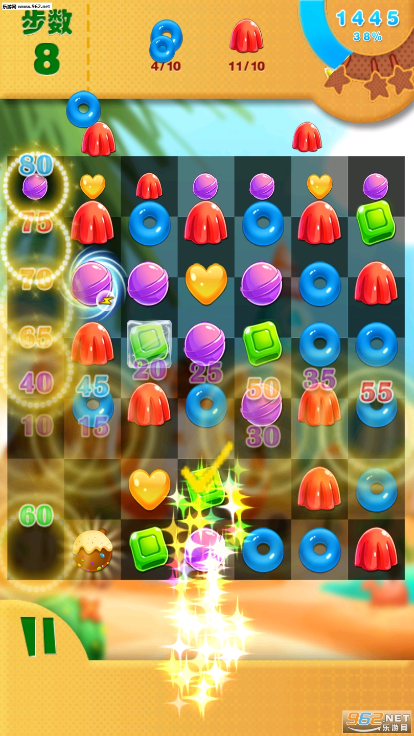 2、指尖触屏操作,连续消除3个以上相同的物体,各种道具免费领取。