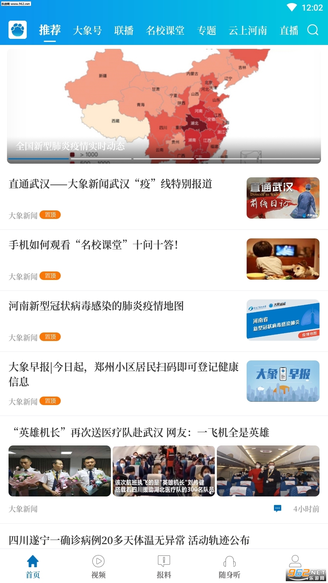 在特殊时期大象新闻App充当河南地区的线上教育场所!专门为河南地区中小学生打造的线上直播教学服务软件,拥有海量丰富的教育资源,帮助更多的河南省的孩子更好的学习知识,了解最新的课程,让更多的高三的孩子能够及时的复习课程,让你更好的享受生活,在家也能完成学习。