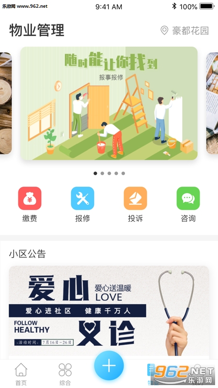 4、物业服务,以物业缴费、报事报修、投诉建议、咨询建议等功能服务于社区物业场景。
