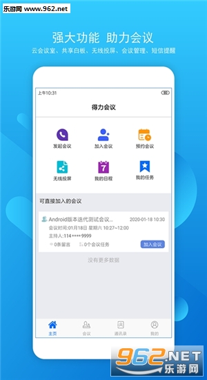 为大家带来得力会议app下载,非常好用的一款办公会议类手机软件,也非常适合这个时候使用,能够轻松解决企业在家办公的相关问题,随时随地组织开会,超级方便,需要的朋友赶紧来下载吧!