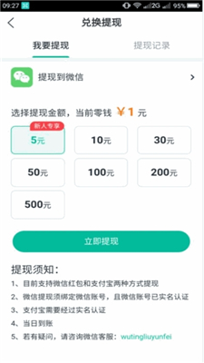3、首次满5元可提现,之后10元起,支持提现到钱包,申请提现后当天就能到账