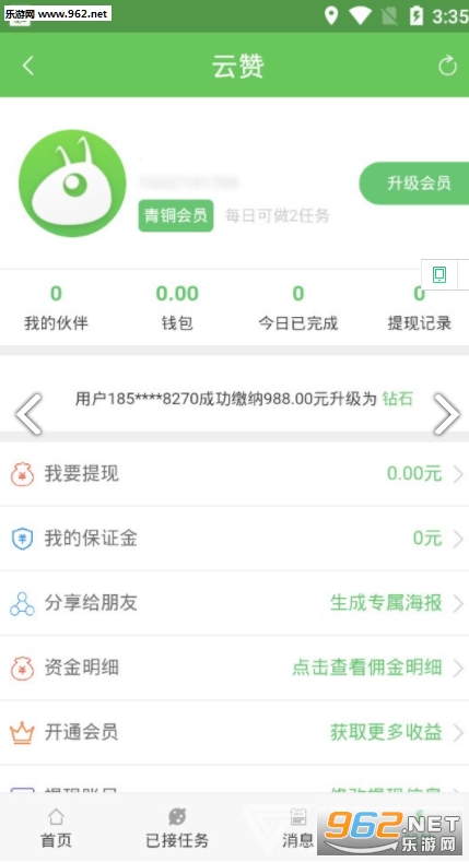 (1)注册即成为青铜会员保证金0.00元可收取使命数量:2条。