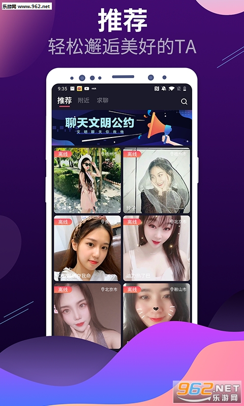 天交友对象,相同的遇见地点;海量同城交友、附近约会每日更新,注重交友真实、聊天安全、约会高效:不闲聊,直接约,和虚假社交说