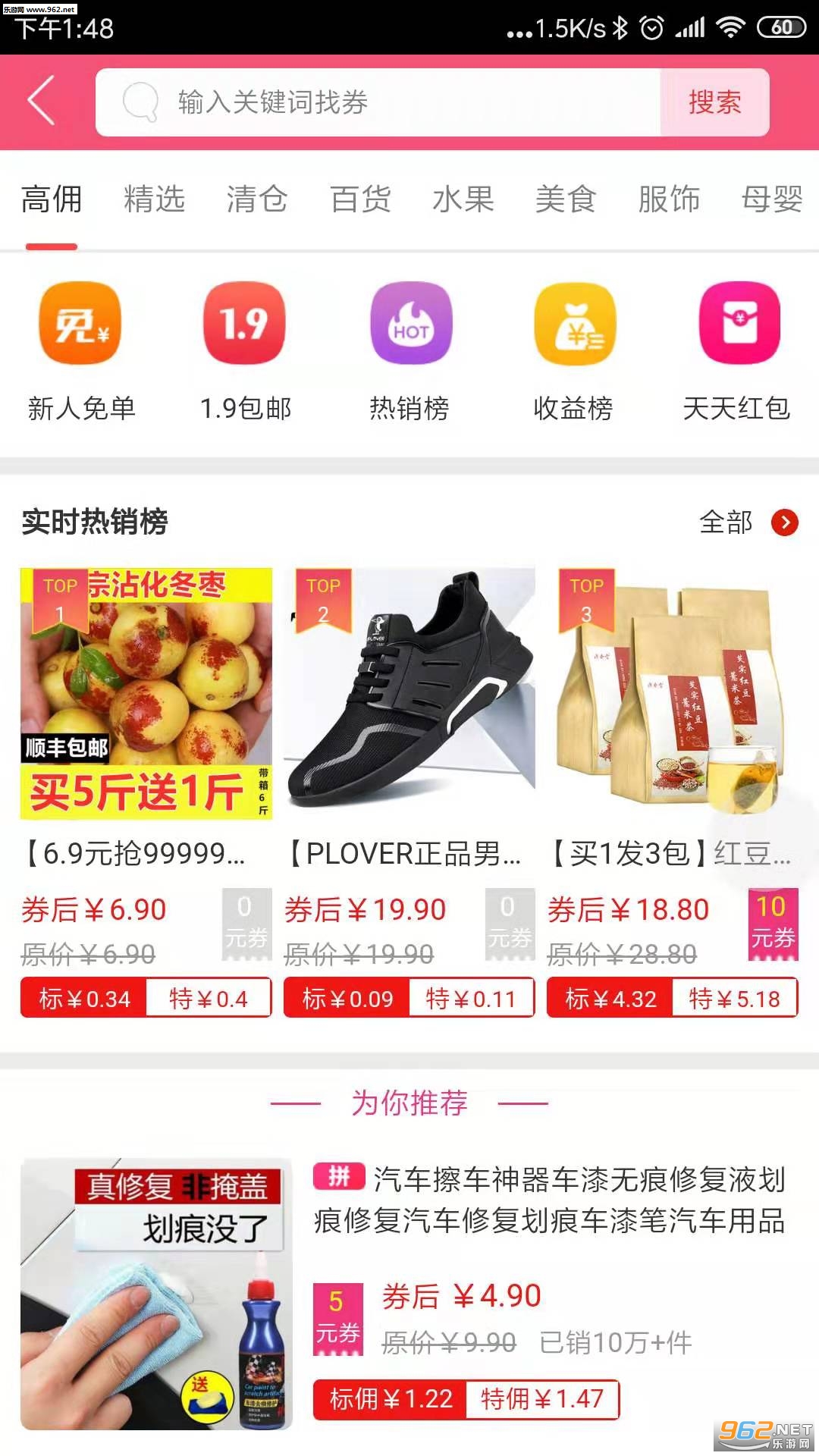 4,手慢无,每天1折商品优惠券抢购,抢到就是赚到!