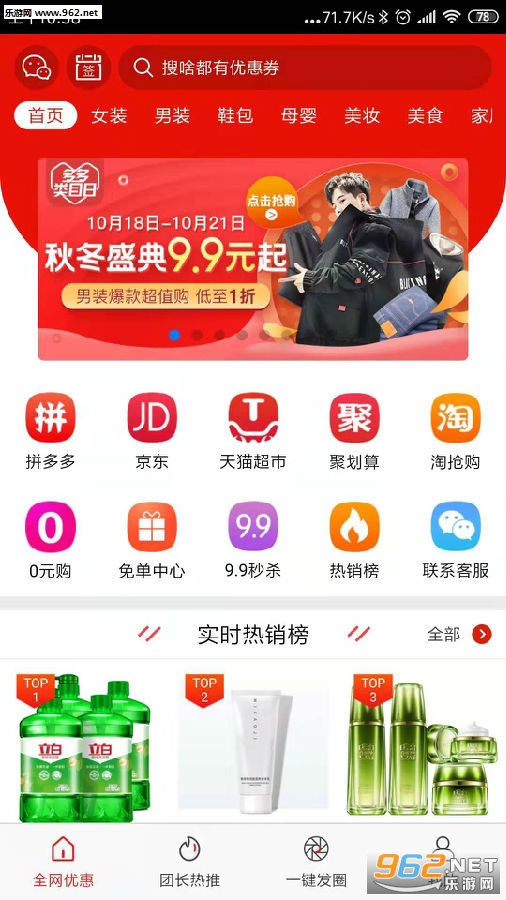1,九块九包邮专区,用券后9块9包邮,每天几百款,超级值;