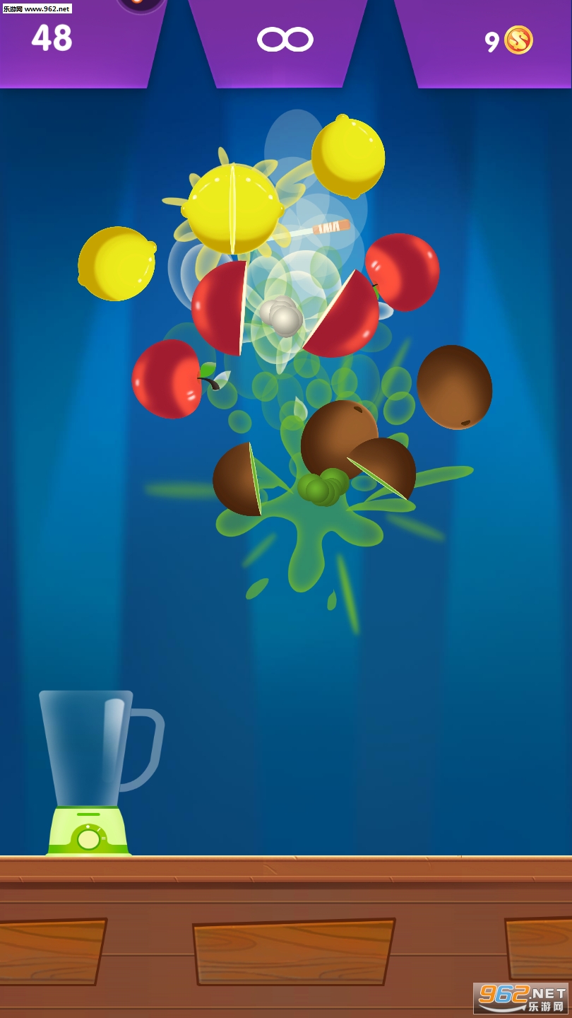 2、狂点屏幕控制你的小刀切各种蔬果,切的越细越工整,你最后的得分就越高;