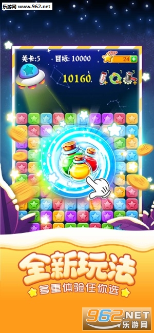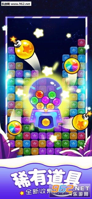 3、随机出现特殊的道具,触发效果,能够消除范围内的所有星星。