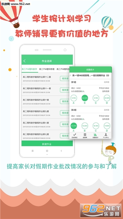 学科网作业系统是由学科网开发的互联网在线教育产品,通过学科网作业系统,学校能够紧紧围绕 “学生”,记录并分析学生日常和节假日的学习情况,用“互联网+”的管理方法链接学生、家长、老师等,实现全流程、可管理、可监控、可运营、可追溯的高质量信息化管理体系,真正提升教学质量。学科网作业系统包含教师端、学生端,均支持在手机、平板等移动设备使用。