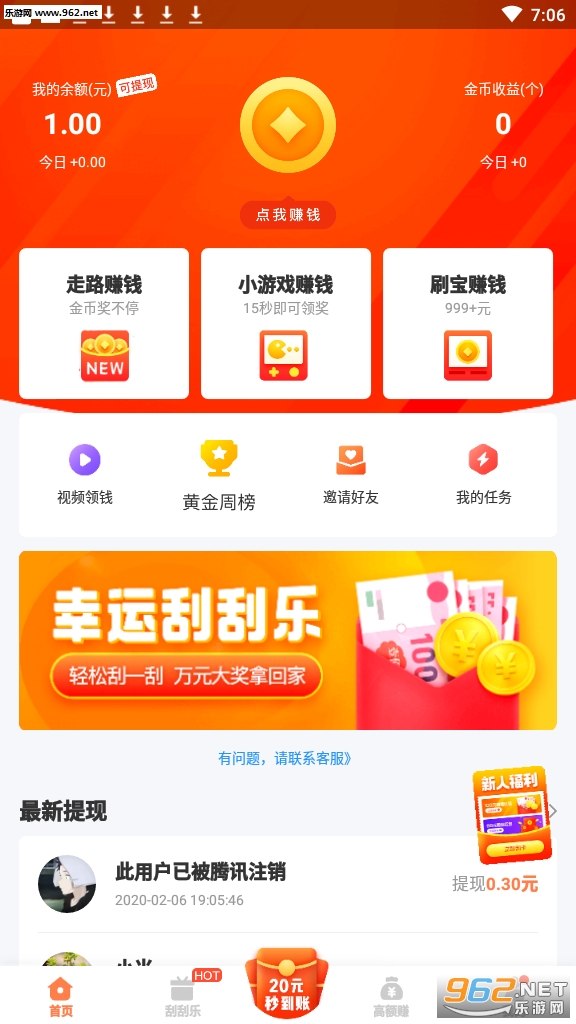 【一元提现赚零钱】 全新版本降低提现门槛,1元、5元、10元任意提现,门槛超低等你来赚零钱!