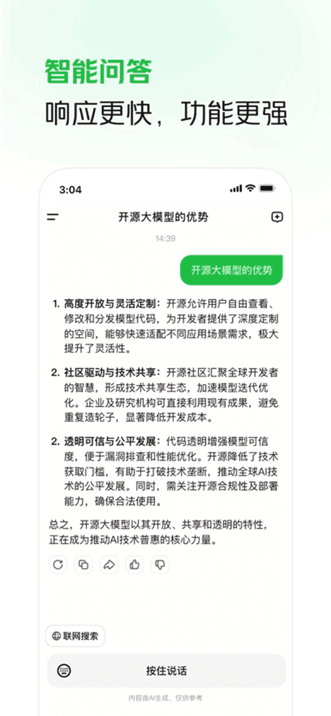 功能覆盖广泛:从联网搜索、文件解析到多语言翻译、代码生成,全面覆盖工作、学习与日常生活中的各类AI需求。