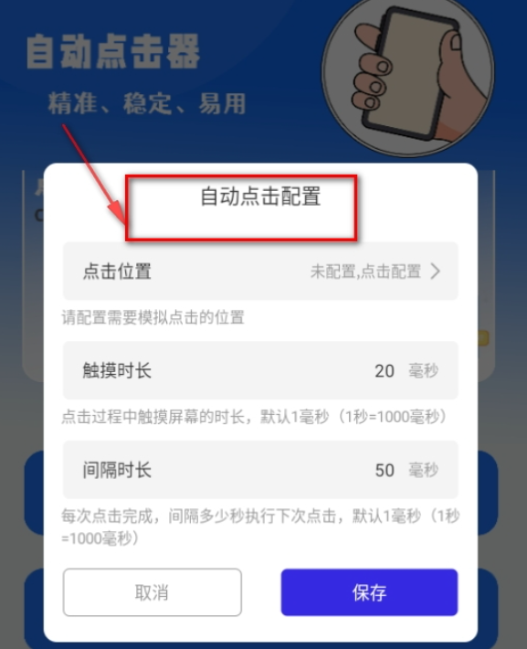 进入配置界面后,点击位置”后的未配置”按钮,即可开始设置点击坐标。