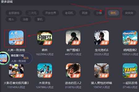 打开菜鸡游戏官方正版App,选择一款支持联机的单机游戏(如《人类一败涂地》),注意:网络游戏或手游本身已具备联机功能,无需通过本平台额外设置。