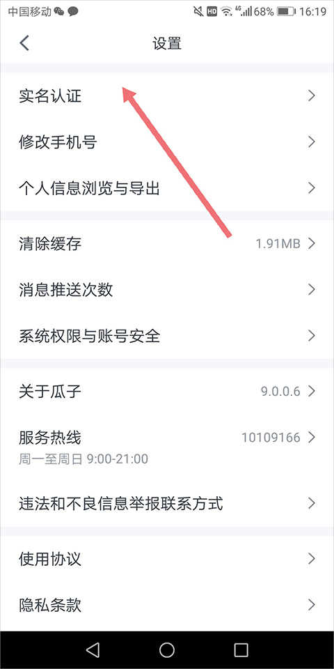 在瓜子二手车App上购车,只需完成实名认证即可开启安心选车之旅。首先进入【我的】页面,点击右上角设置图标,进入实名认证入口。