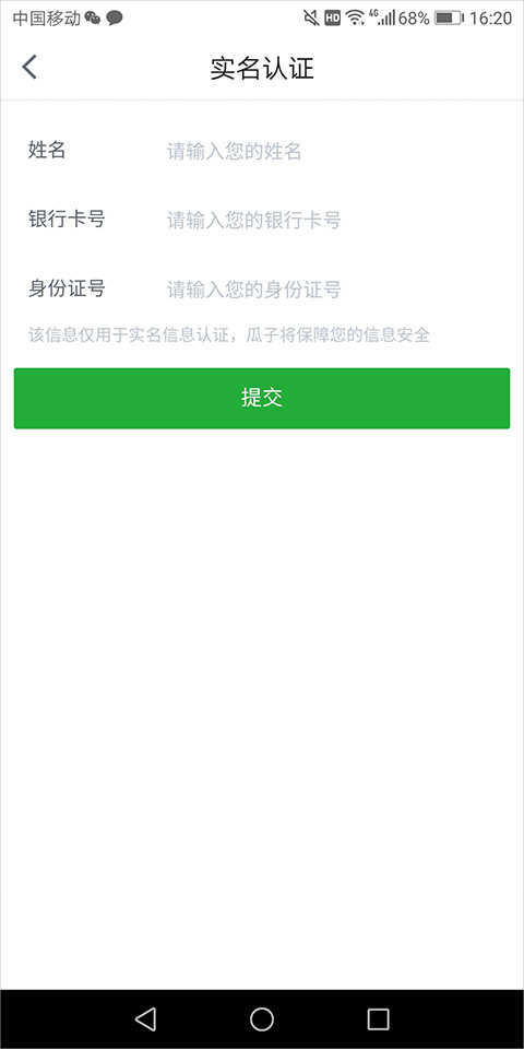 在新页面中选择【实名认证】,按提示输入姓名、身份证号及银行卡号并提交。